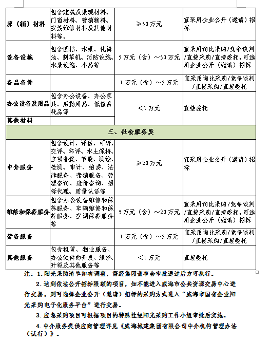 第十七條 本制度規(guī)定的采購范圍包括工程建設(shè)項(xiàng)目、物資和社會服務(wù)的招標(biāo)采購(詳見附件一《威海城建集團(tuán)有限公司陽光采購清單》)。