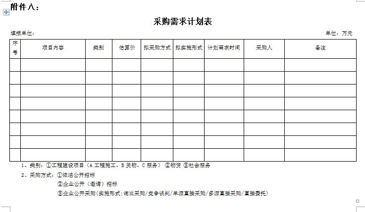 附件八:《采購需求計(jì)劃表》