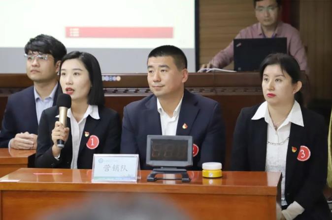 “蓬勃飛躍,勇爭第一!”“紅色物業(yè),為民服務(wù)!”“不忘初心,砥礪前行!”“開拓市場,有我最強(qiáng)!”在一聲聲洪亮的口號聲中,比賽拉開了序幕。此次黨史知識競賽內(nèi)容新穎、形式創(chuàng)新,競賽全程采取隨機(jī)抽題的方式,分別設(shè)置了必答題、搶答題、風(fēng)險(xiǎn)題三個(gè)競賽環(huán)節(jié)。在第一關(guān)的必答題環(huán)節(jié),每隊(duì)輪流派出三名選手作答,大家應(yīng)答如流、自信滿滿,黨史知識儲備可見一斑,比賽氛圍熱烈。