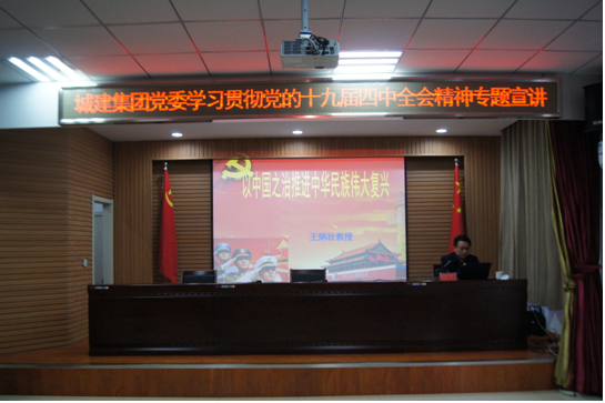 為深入學(xué)習(xí)宣傳黨的十九屆四中全會(huì)精神,12月12日,威海城建集團(tuán)黨委理論學(xué)習(xí)中心組對(duì)十九屆四中全會(huì)精神展開(kāi)集中學(xué)習(xí),邀請(qǐng)市委十九屆四中全會(huì)精神宣講團(tuán)成員、中共威海市委黨校王炳壯教授,以《以中國(guó)之治推動(dòng)民族復(fù)興》為題,為全體黨員和干部職工對(duì)十九屆四中全會(huì)精神進(jìn)行了詳細(xì)講解。集團(tuán)黨委副書(shū)記孫曉東同志主持會(huì)議并提出具體要求。