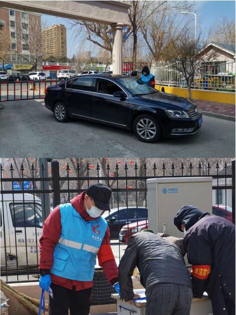 “你好,我們是社區(qū)黨員志愿者,給你送些生活用品?!彼{天小區(qū)和世紀家園小區(qū)是韓籍人員居住較多的小區(qū),近期日、韓返威人員較多,因居家留觀采購不便,城建集團黨員志愿者們,主動幫助居家留觀家庭開展義務(wù)送快遞、倒垃圾、購買生活用品等志愿服務(wù)活動,為居家留觀人員生活提供必要的保障。