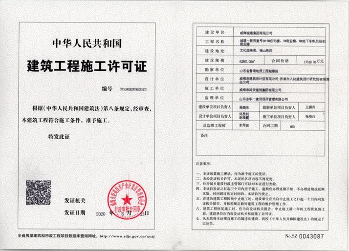 建設(shè)單位:威海城建集團(tuán)有限公司 負(fù)責(zé)人:吳曉東