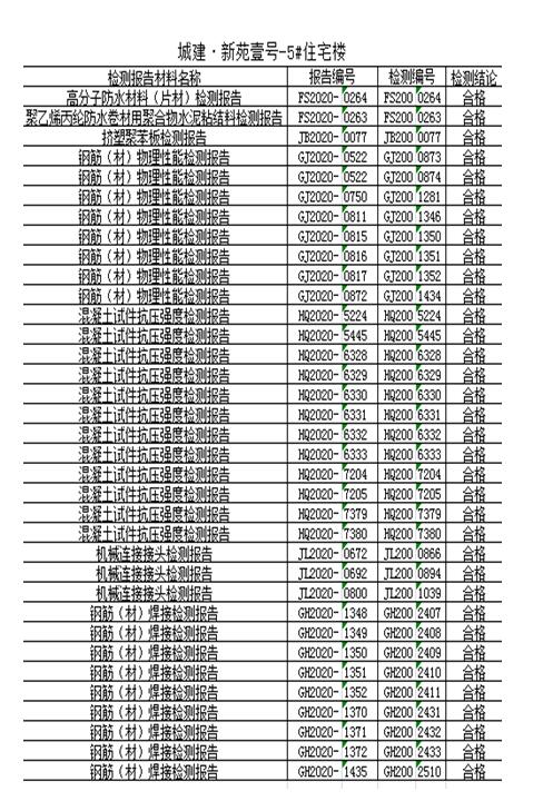 四、主體材料檢測(cè)信息: