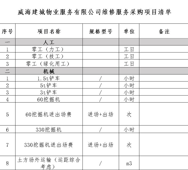 威海建城物業(yè)服務(wù)有限公司維修服務(wù)采購項(xiàng)目